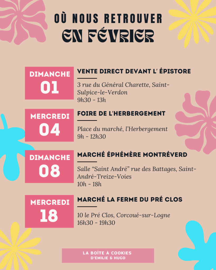 Bienvenue Le Coloré Croquant Le Coeur Caramel La Douceur Soufflée Le Coloré Croquant Le Coeur Caramel La Douceur Soufflée Découvrir nos cookies Notre histoire En savoir plus Viens nous suivre ! Veuillez laisser ce champ vide Le Club des Gourmands 💛 Nouveautés, dates de marchés, surprises gourmandes et code promo occasionnels !! Nous ne spammons pas ! Consultez notre politique de confidentialité pour plus d’informations. 🎉 Bienvenue dans le Club des Gourmands ! À très vite, Émilie & Hugo Veuillez laisser ce champ vide Le Club des Gourmands 💛 Nouveautés, dates de marchés, surprises gourmandes et code promo occasionnels !! Nous ne spammons pas ! Consultez notre politique de confidentialité pour plus d’informations. 🎉 Bienvenue dans le Club des Gourmands ! À très vite, Émilie & Hugo