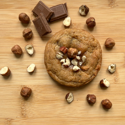 Un cookie généreux en noisettes croquantes et pépites fondantes. Entre croustillant et douceur, c’est un vrai trésor de la forêt.